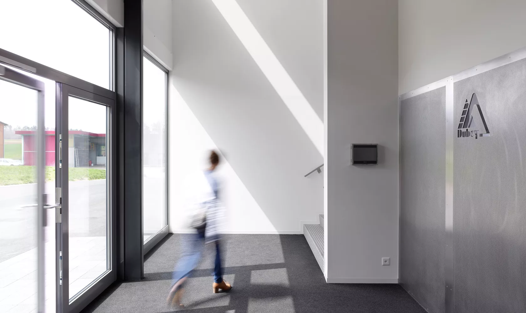 La domotique s’occupe de gérer différents éléments du bâtiment, les volets orientables des lanterneaux de toiture, les clapets de ventilation du bâtiment, les droits d’accès des portes sectionnelles, la température des ateliers en été, l’ensemble de l’éclairage LED.