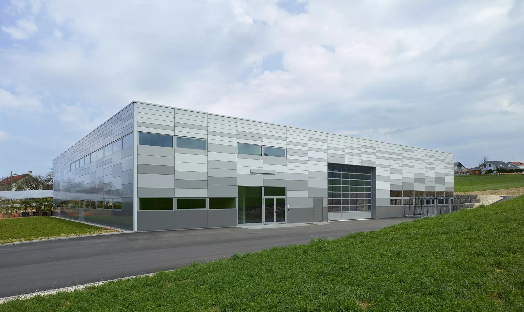 Le toit est composé de la charpente métallique, de tôles profilées avec sur chaque ondulation une rangée de perforation le tout rempli d’isolation phonique, d’un pare-vapeur bitumineux, de 22 cm d’isolation extrudée, d’une étanchéité bitumineuse bicouche et d’une végétalisation.